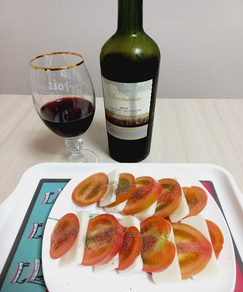 토마토와 모짜렐라 치즈가 와인의 떪고 텁텁함이나 쓴맛과 신맛을 잡아줘서