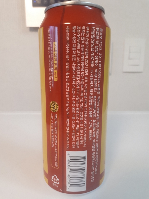 정제수와 보리맥아 그리고 홉등 딱 세가지만 표기되어 있는 걸 보면
