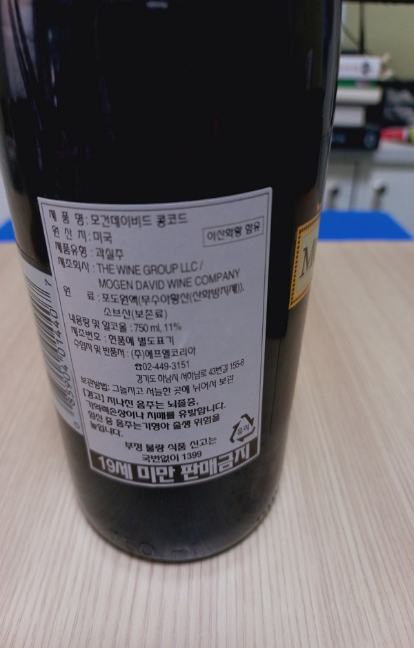 오늘 후기로 남길 술은 모건 데이비드 콩코드 (Mogen David Concord)라는 와인입니다.